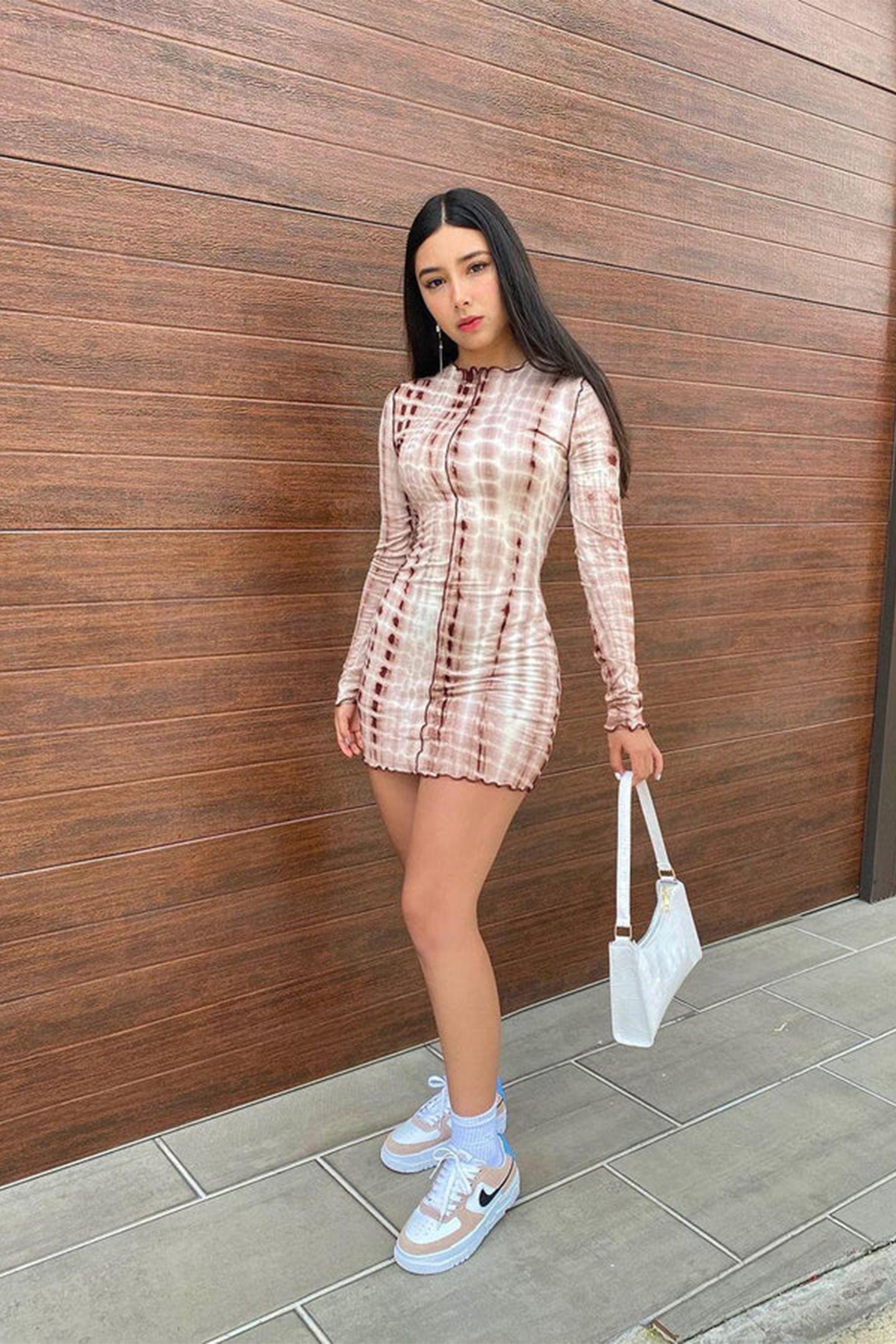 For a laid-back yet stylish look, this tie-dye bodycon dress is a perfect pick. With full sleeves and a body-hugging fit, it effortlessly combines casual comfort with trend-forward fashion. Perfect for brunch dates or weekend outings.