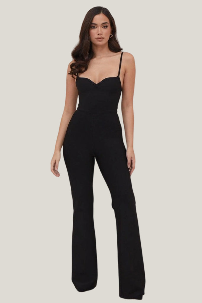 The Darcy Jumpsuit combines comfort and elegance with its sweetheart neckline and spaghetti straps. Its tailored fit creates a flattering silhouette, making it the perfect choice for a chic, effortless look on any occasion.