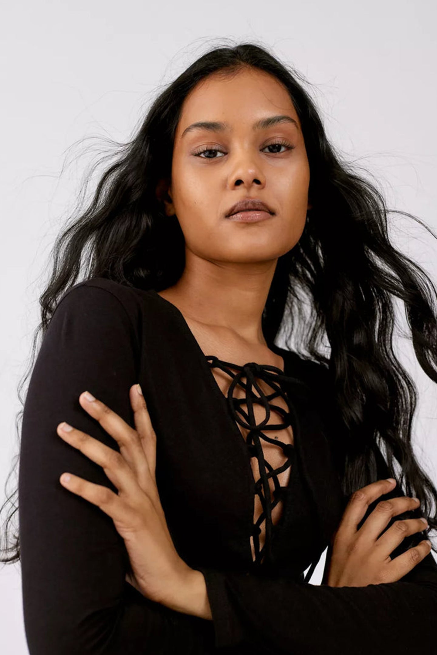 With its V-neckline and lace-up detailing, the Evora Dress exudes elegance. The full sleeves add a touch of sophistication, making it a versatile choice for both daytime and evening events.