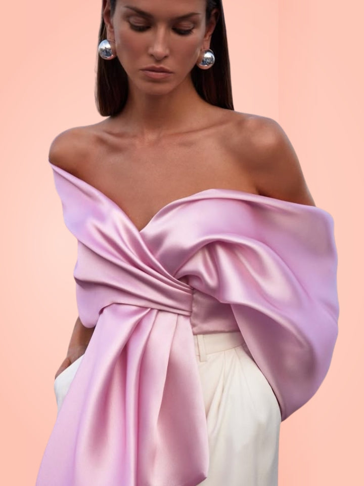 Elevate your everyday chic with the Frosted Blush Off Shoulder Top from Kyra Closet. Crafted in soft dull satin, this 16-inch crop silhouette drapes beautifully while adding a subtle sheen. The pastel pink hue exudes effortless femininity—perfect for pairing with denims, skirts, or layered looks for brunches, dates, and evenings out.