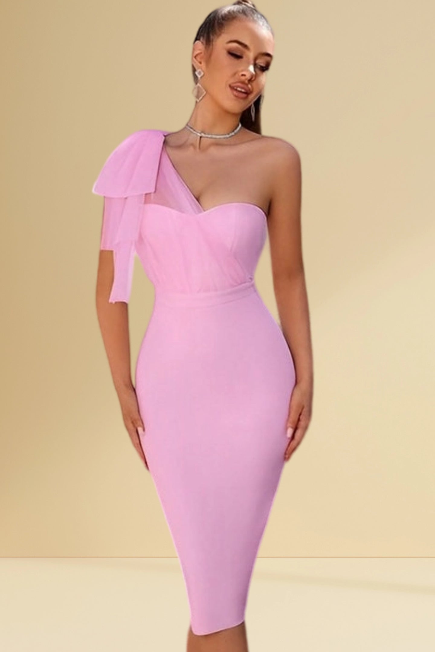 The Lavi Dress showcases a tube design with ribbon straps and a bodycon fit. Its midi length and luxe fabric make it perfect for upscale events or an evening out.