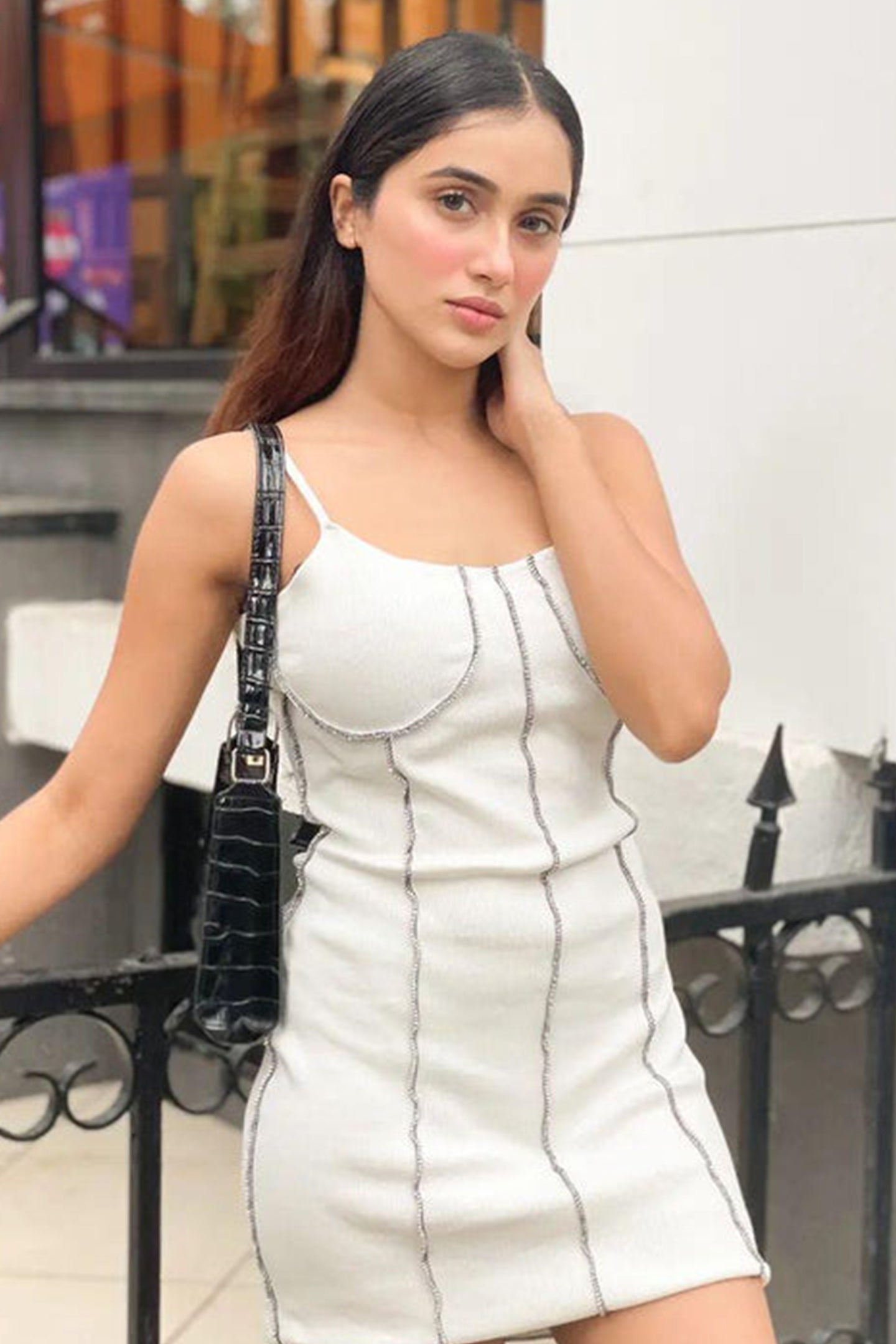 Fabric: Flaunt yourself in White Bodycon Dress, Designed especially for your comfort with Ribbed Lycra, Length 32 inches